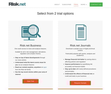 This was my biggest project during my time at Incisive Media. I redesigned 11 subscription sites, transforming basic static pages into modern microsites. The redesign resulted in an 18% reduction in bounce rates on the subscription order forms, 15% increase in online order cash YoY (worth £24k) and a 25% improvement in the Visitor to Trial conversion rate against the previous year. The redesign won Incisive Media's Marketing Initiative award in 2016.